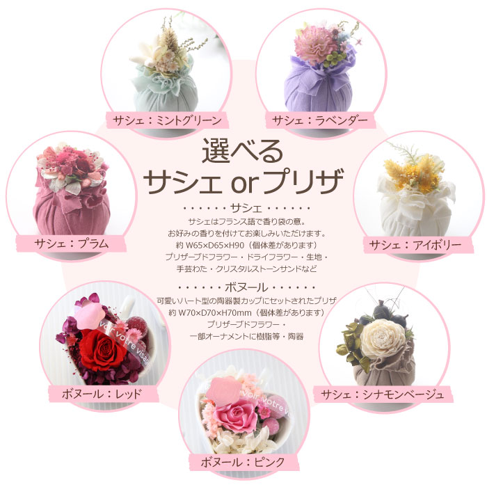 ※内容:プリザーブドフラワー、樹脂(一部オーナメント等)、陶器