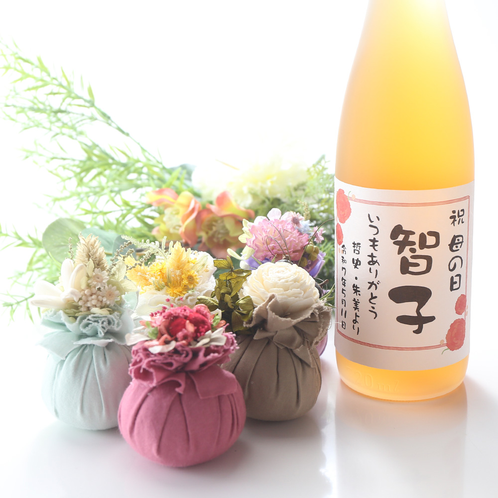 母の日 女性 お母さん 名入れ ギフト 名入れラベル 梅酒< 高千穂 熟成梅酒 & プリザーブドフラワー or サシェ セット>720ml 14度 誕生日 プレゼント 送料無料 名入れ 最強配送 最短 [PF-P12]